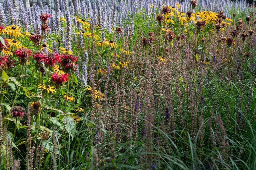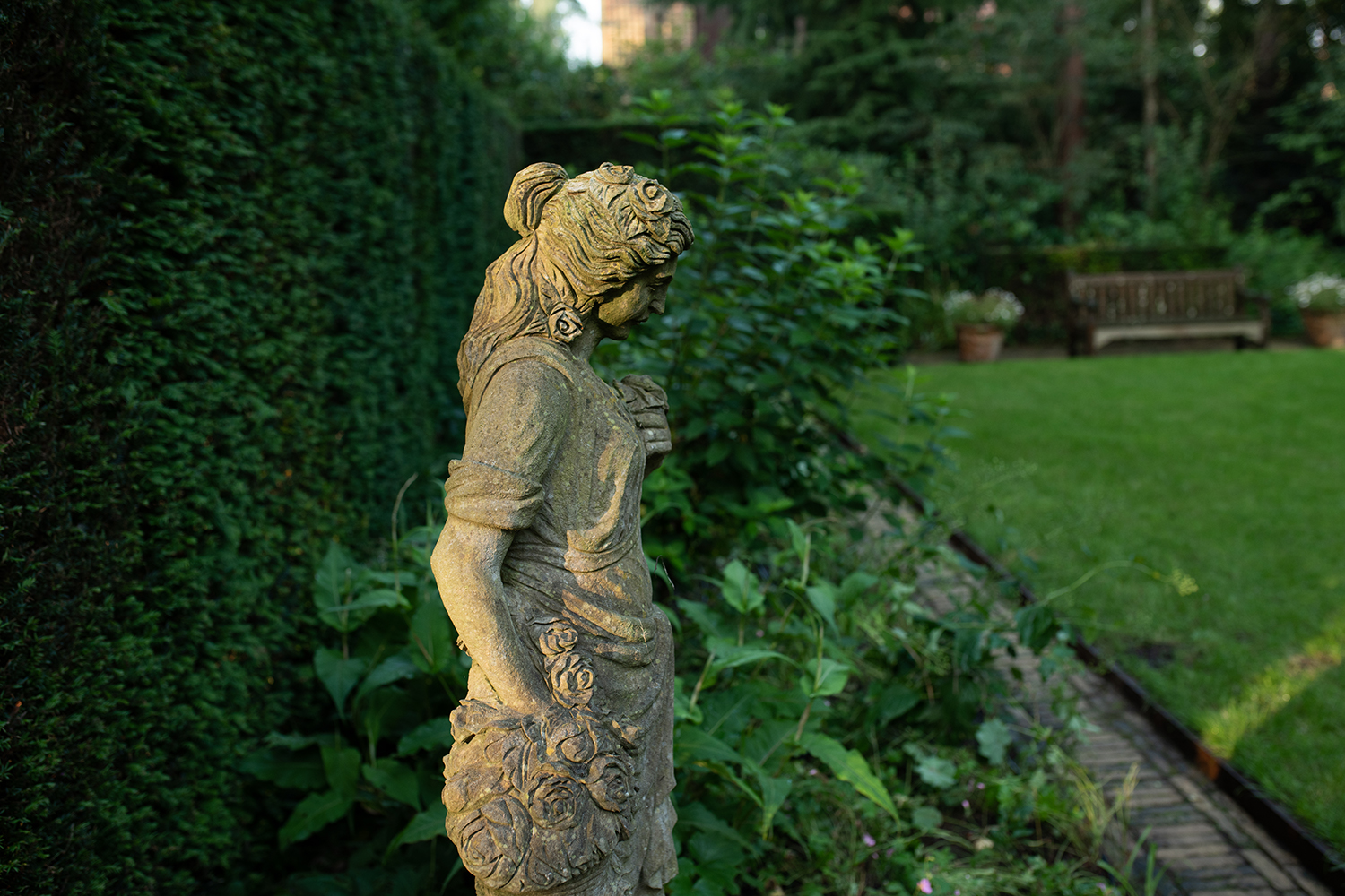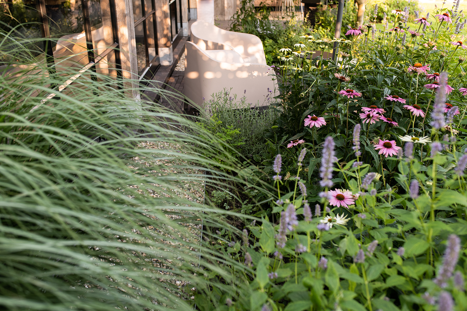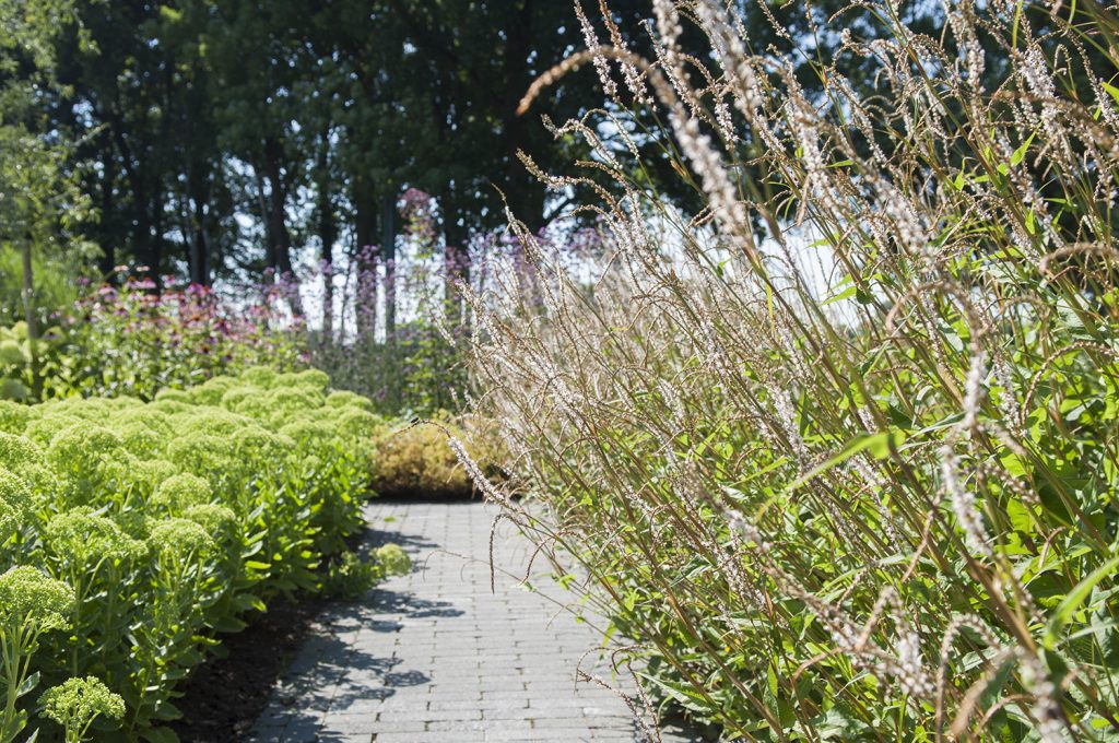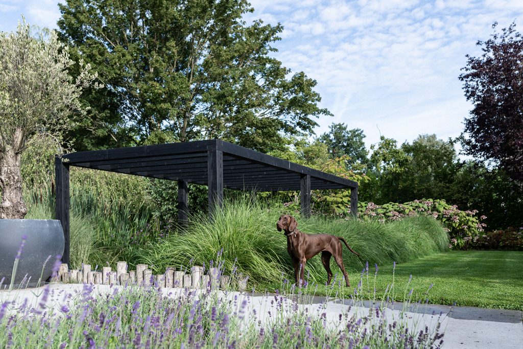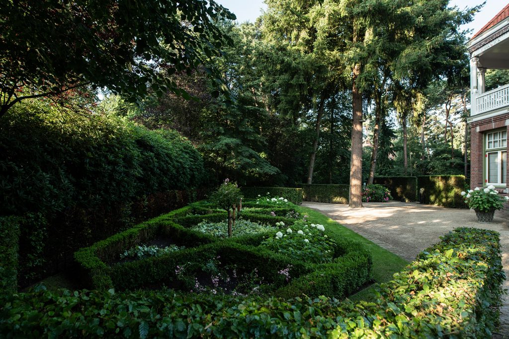Een klassieke tuin die volop leeft in alle seizoenen. De tuin omringt en verrast door de bijzondere composities en variatie in structuren.